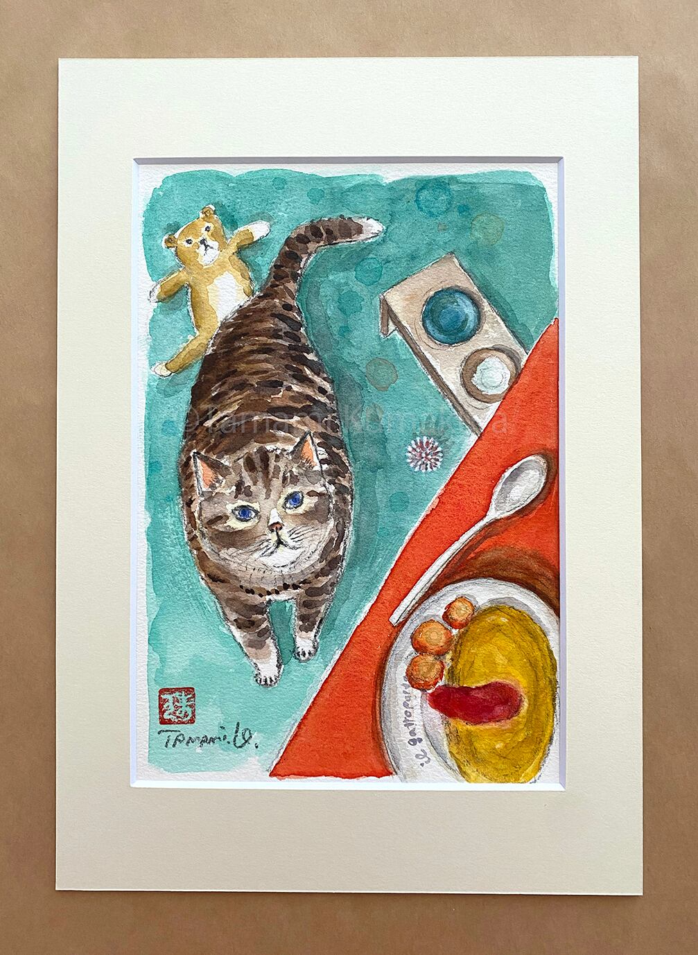 原画 「昼時に現れるキジトラ猫〜 A brown tabby cat is with you at lunch hour」