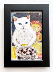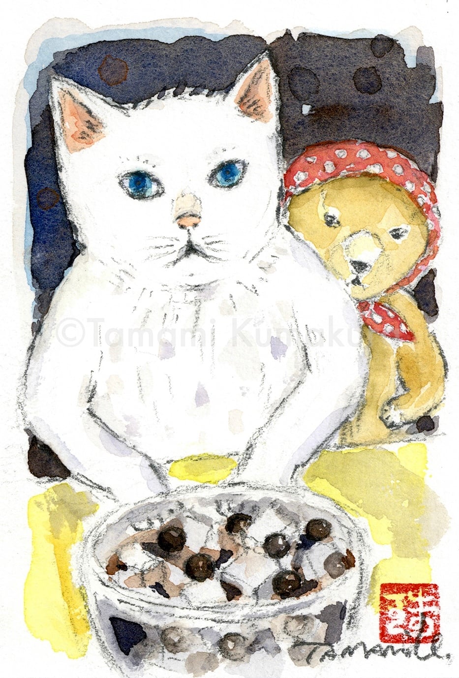 原画「白猫とクマの豆かん屋」ポストカードサイズ