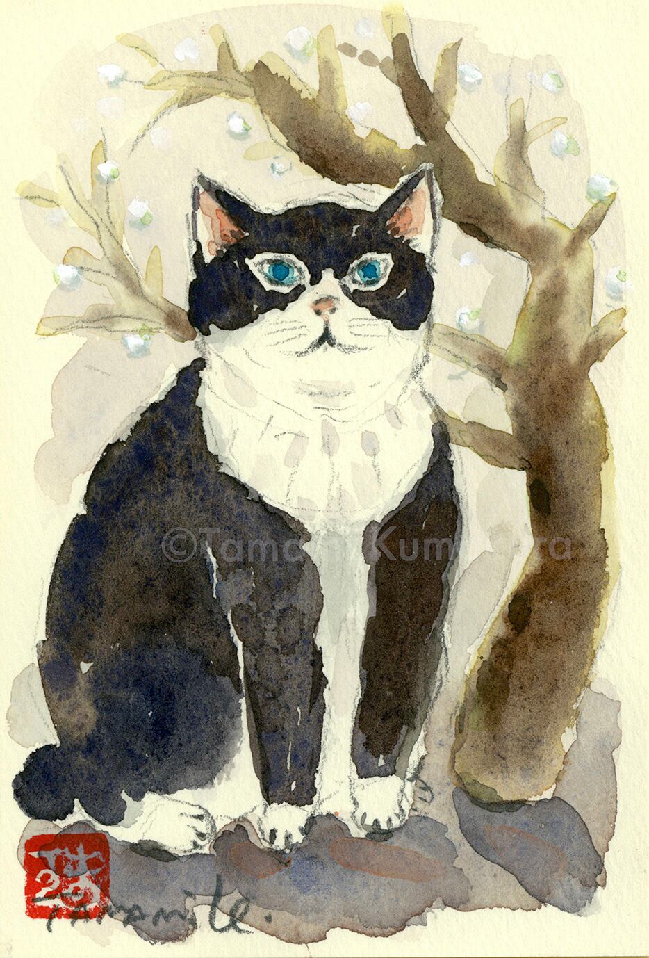 原画「猫と白梅」ポストカードサイズ
