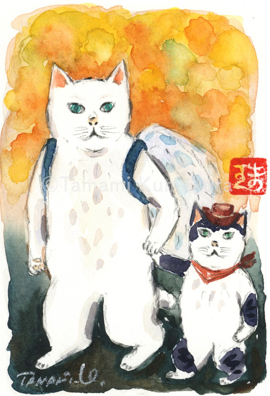 原画「仮装パーティへいく猫たち 〜Halloween Party 2025」ポストカードサイズ