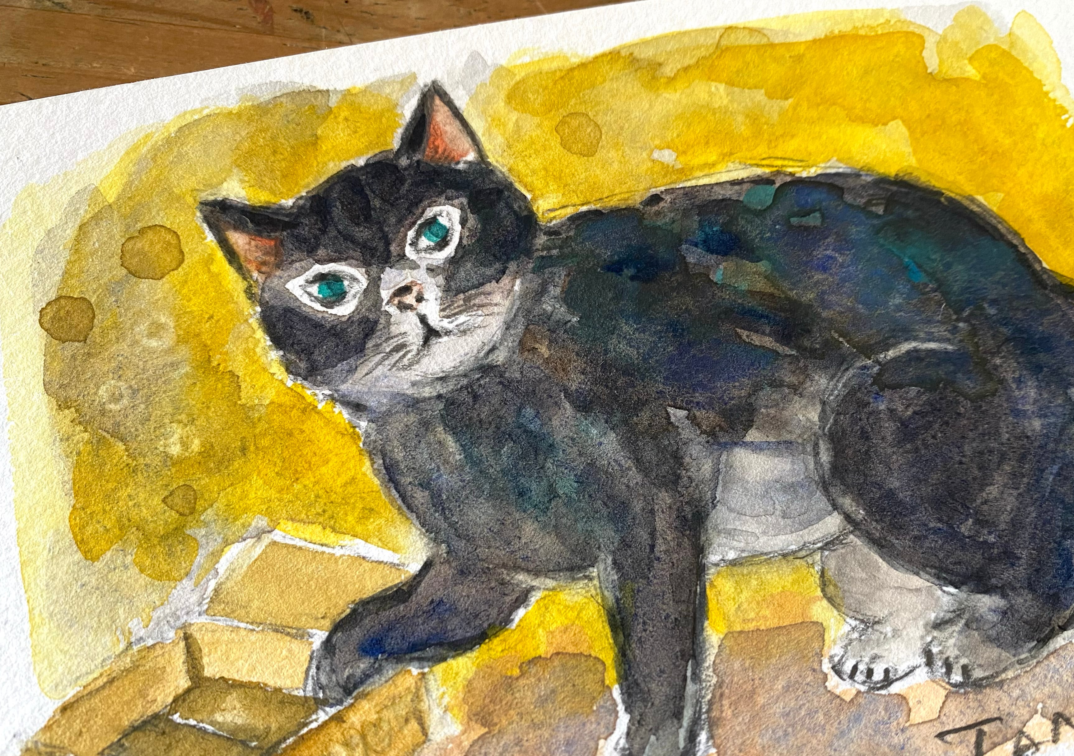 原画「箱に収まろうとしている猫」ポストカードサイズ