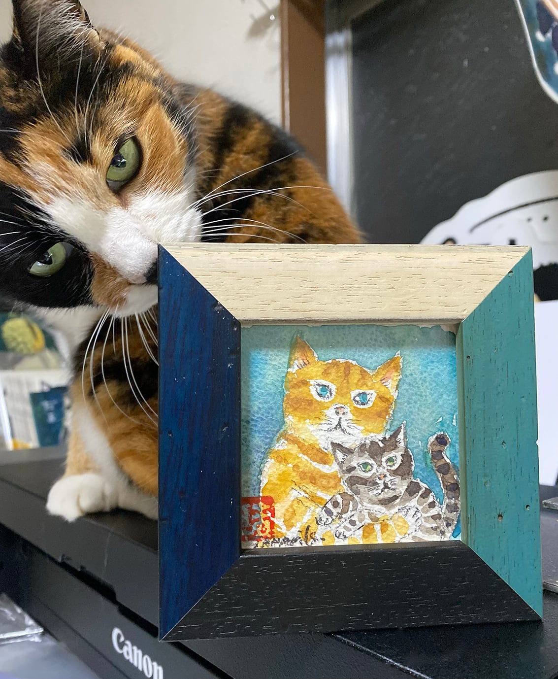 京都の画材屋さんで調達したミニ額に原画を入れました。