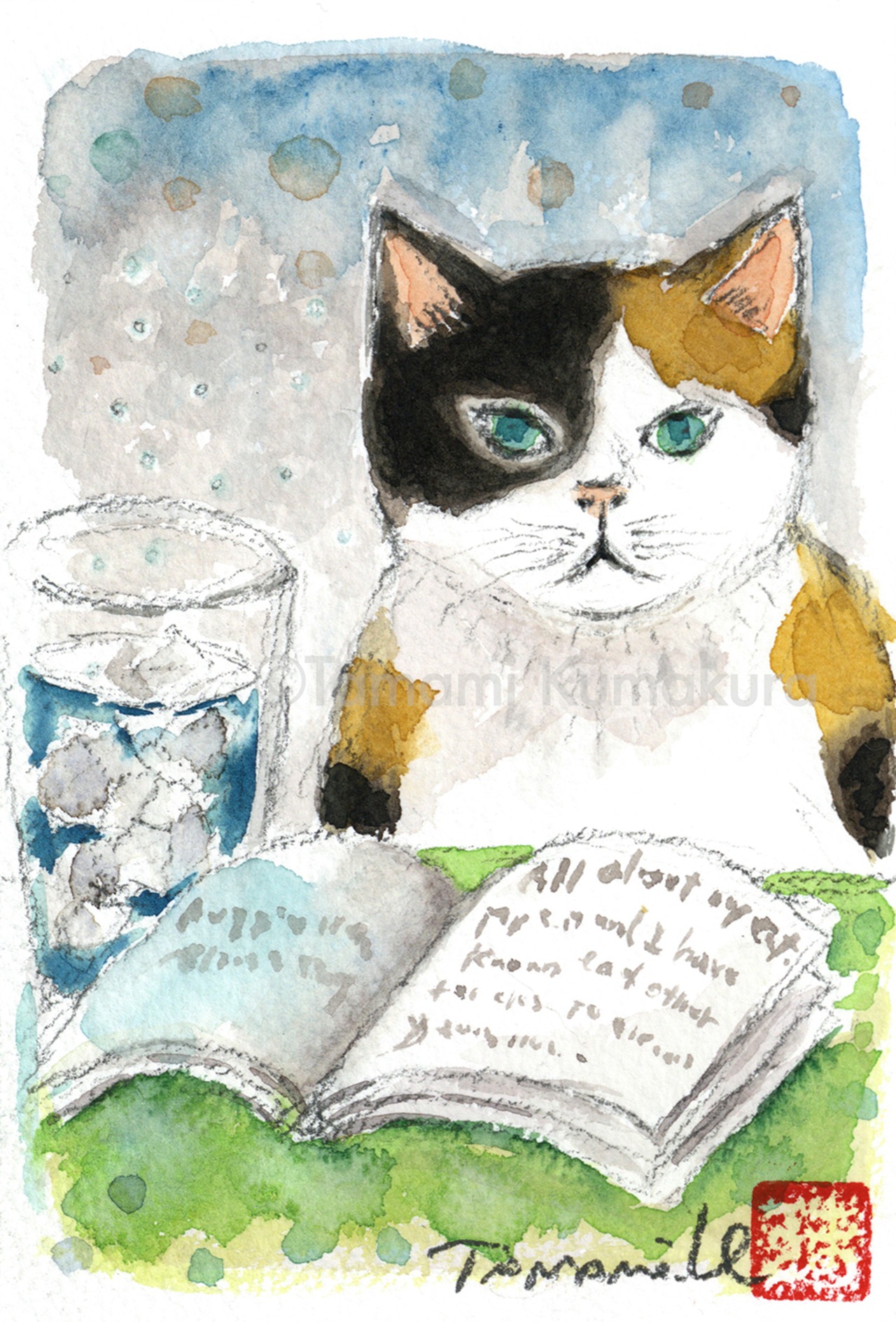 原画「三毛と本とソーダ水」ポストカードサイズ