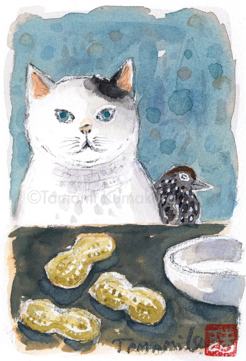 原画「猫と三つのピーナッツとホシガラス」ポストカードサイズ