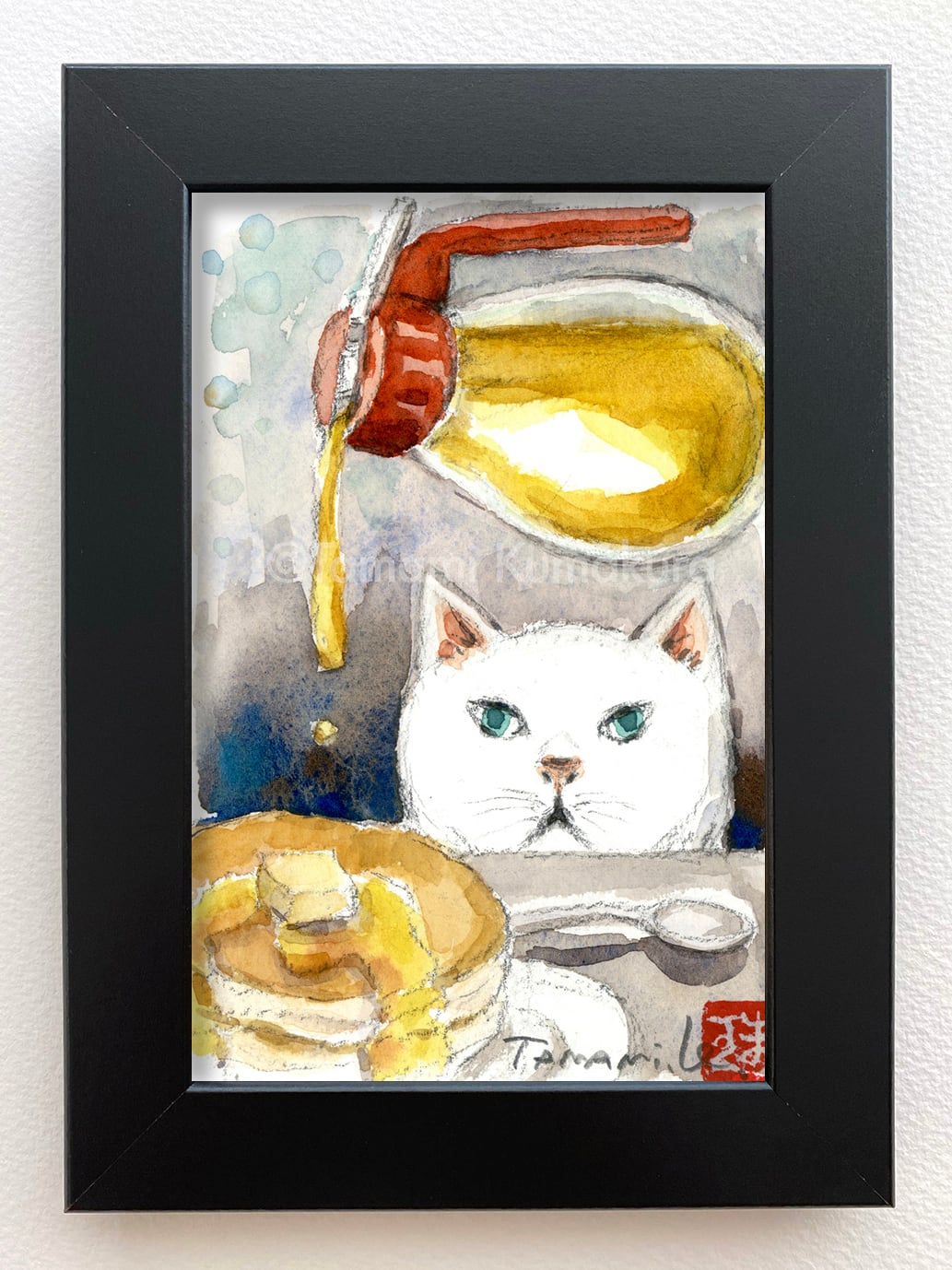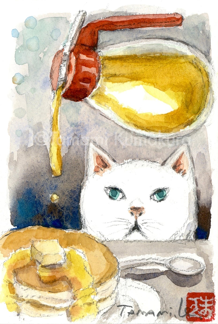 原画「白猫とおやつの時間」ポストカードサイズ