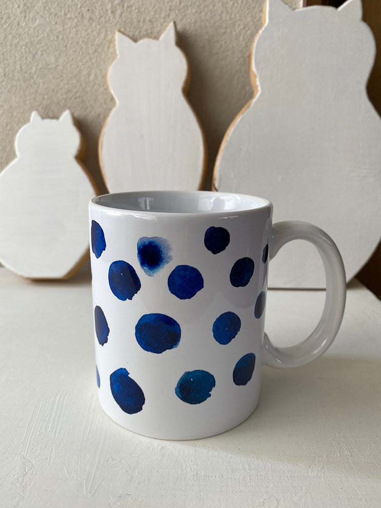 綺麗なブルーの水玉が一面に描かれています。